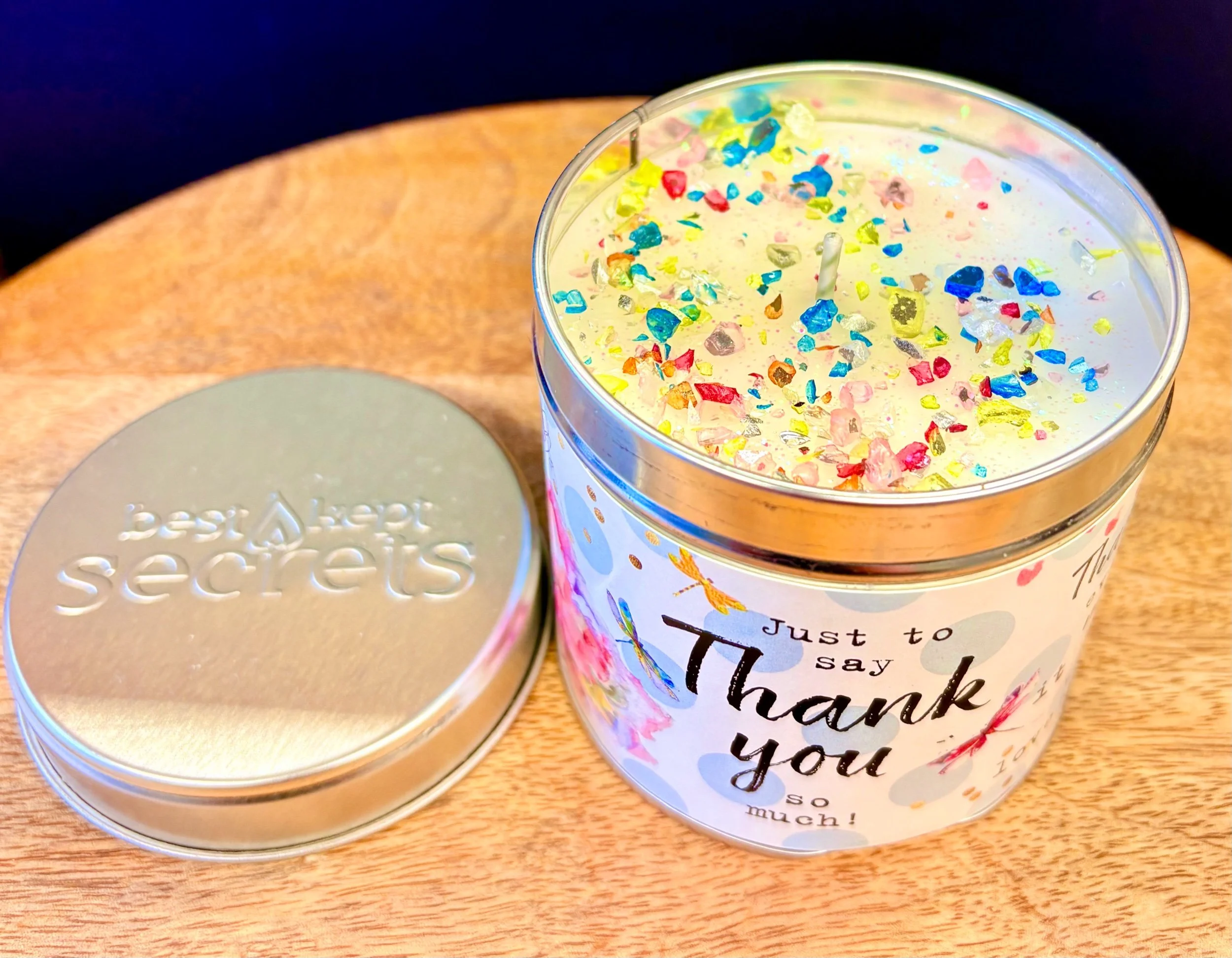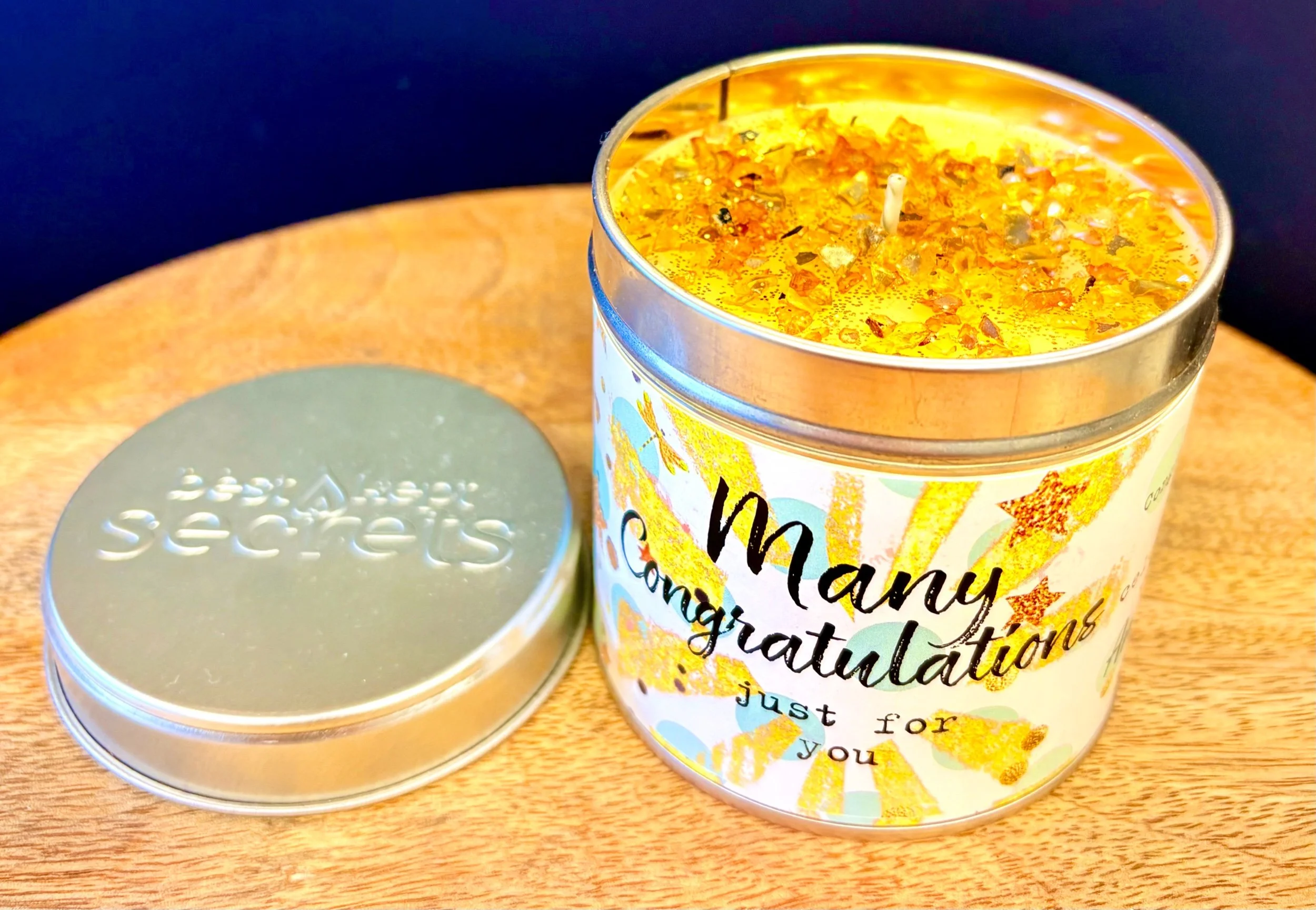 Extras › Best kept secrets tin candle - classic cotton Image 1 of 3 Image 2 of 3 Image 3 of 3 Best kept secrets tin candle - classic cotton £10.00 Best kept secrets 240g tin candle - classic cotton fragrance. Occasion: Many congratulations Thank you Add To Cart Added! Best kept secrets 240g tin candle - classic cotton fragrance.