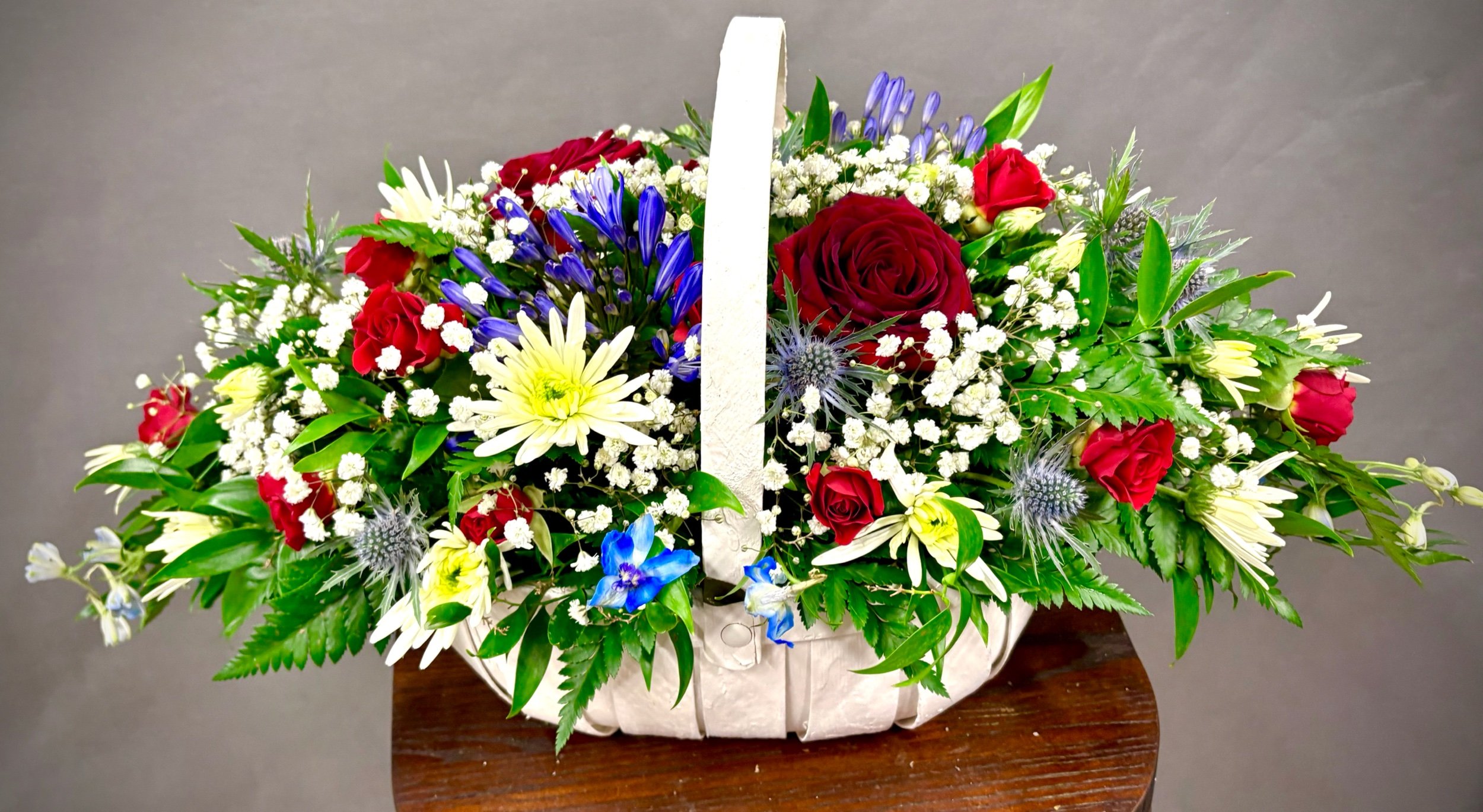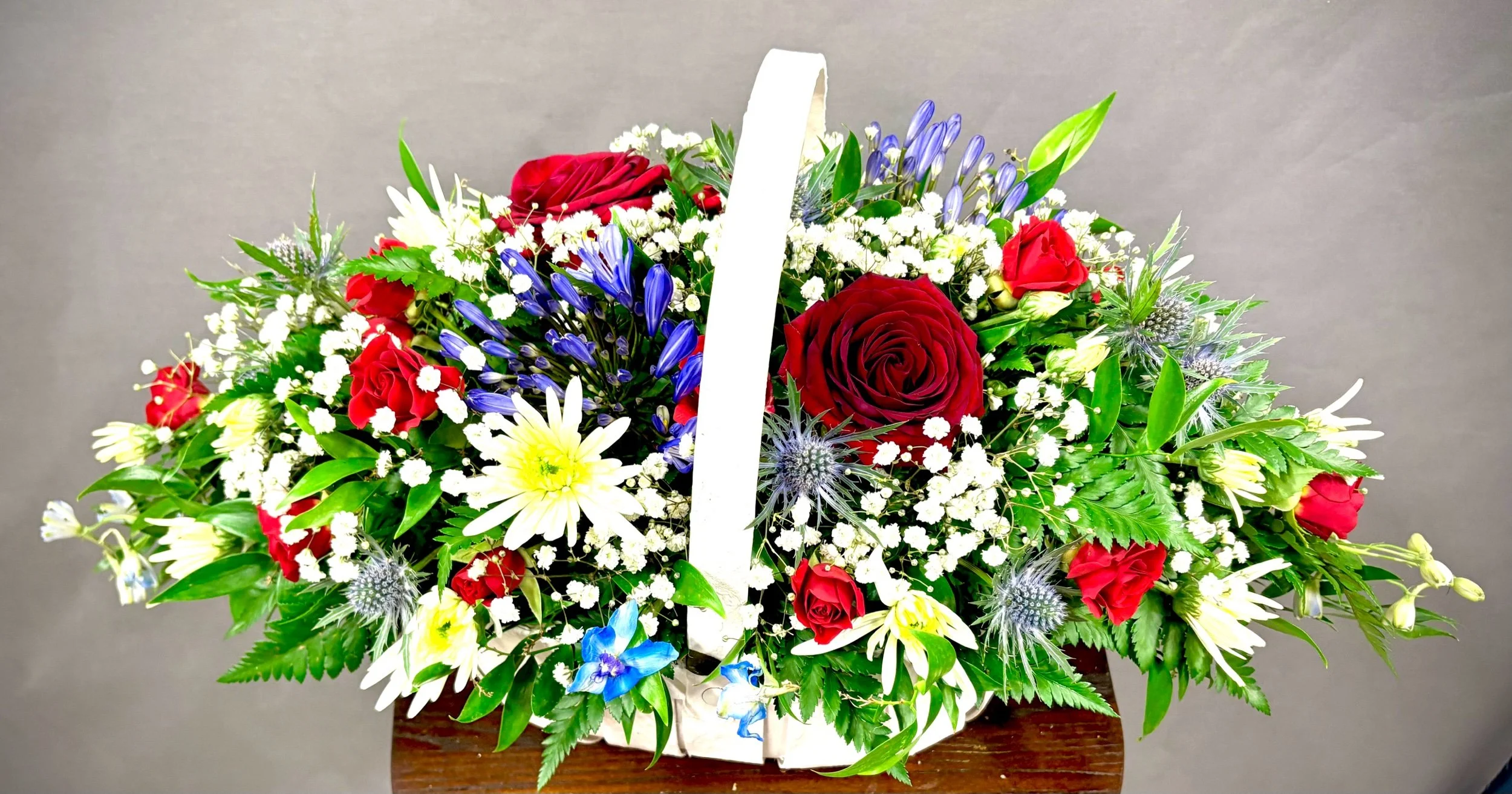 Red, white and blue basket tribute