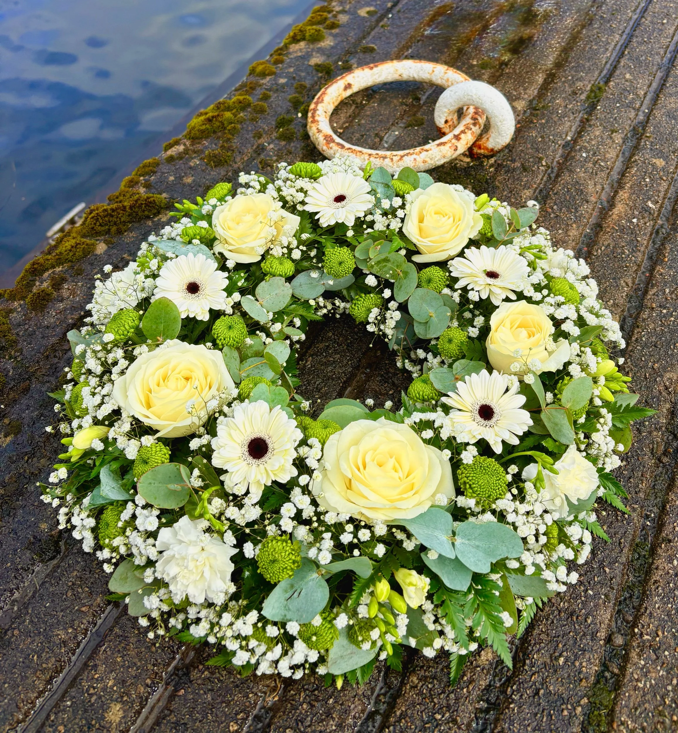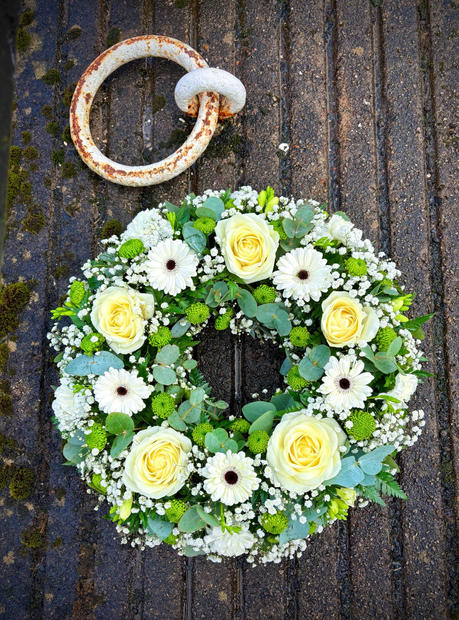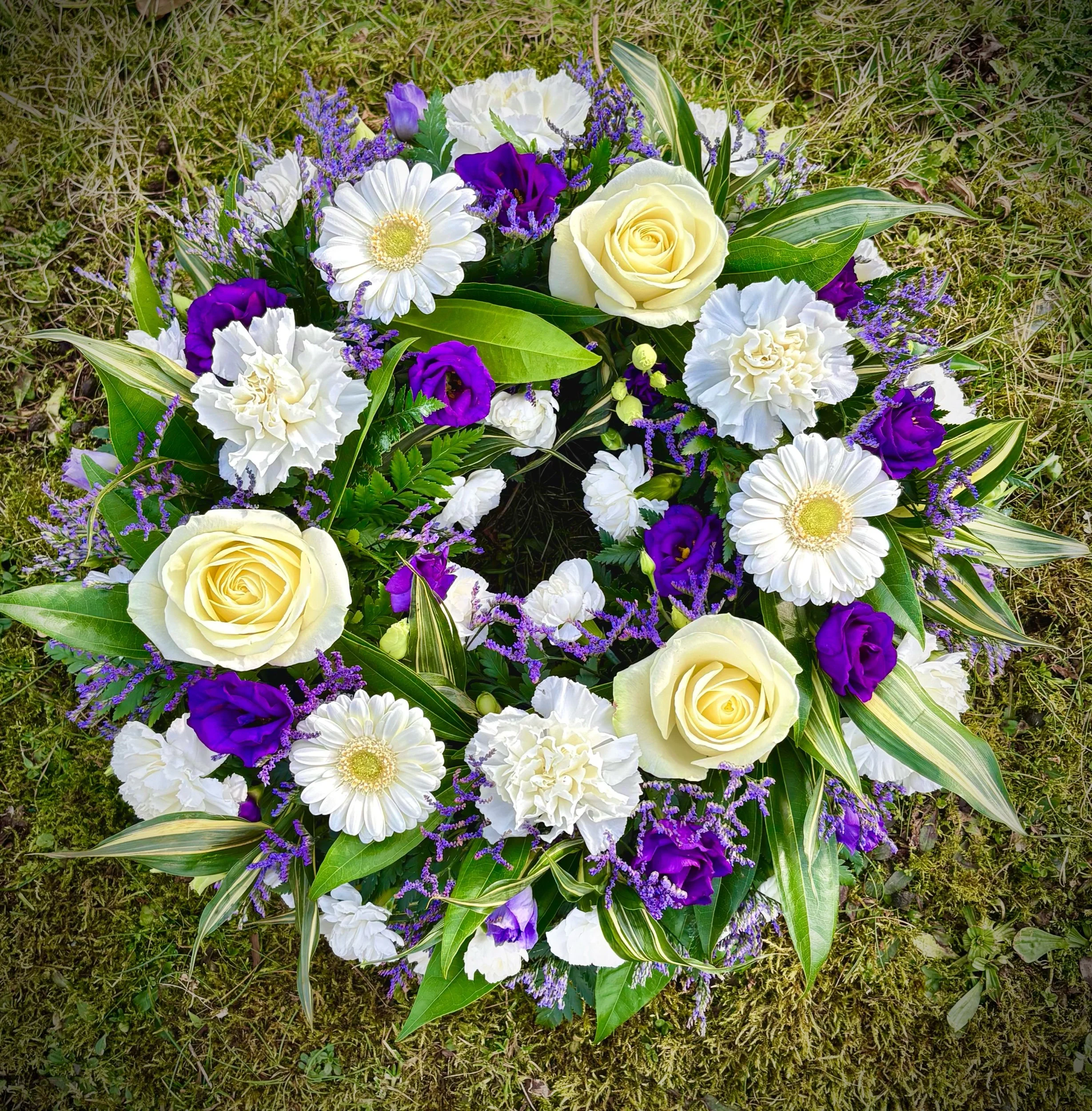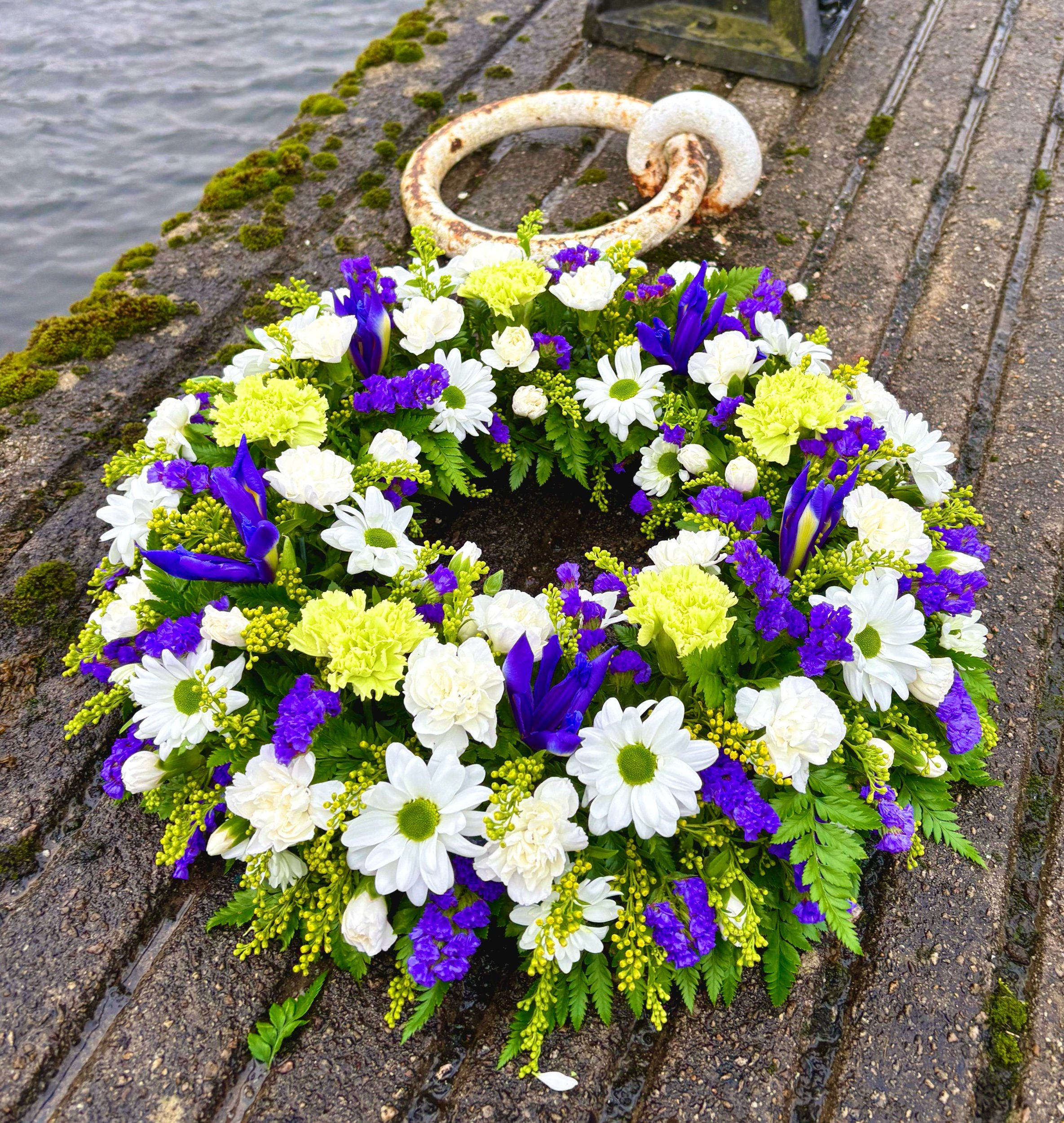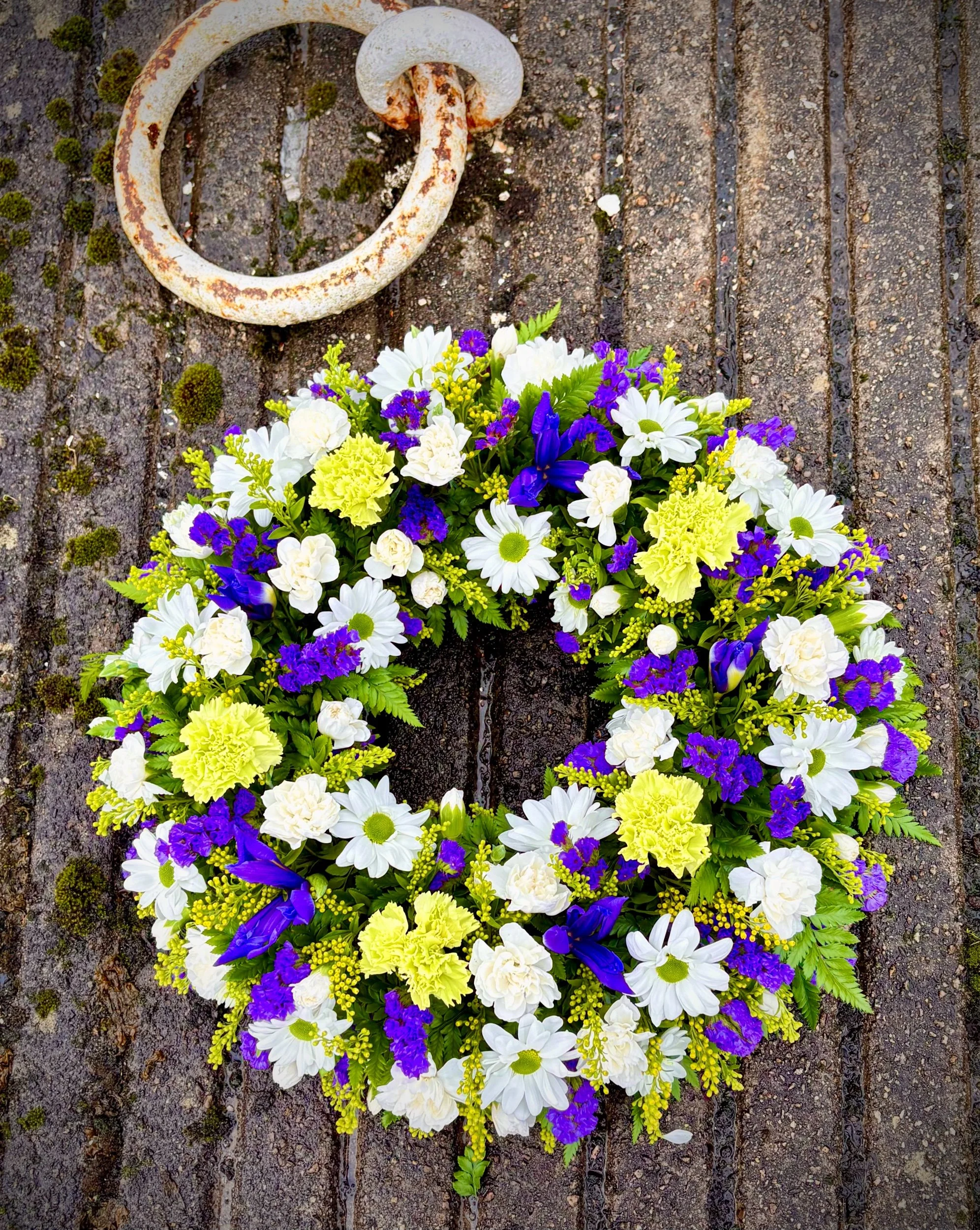 Iris and Daisy wreath tribute